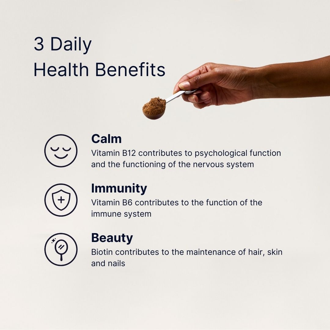 Perfect as a comforting, healthy, caffeine-free alternative to coffee or hot chocolate. Swap your regular hot chocolate for a daily ritual that supports relaxation, cognitive function, and skin hydration.
