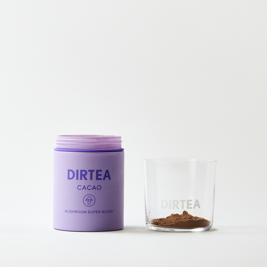 DIRTEA Cacao blends rich, organic cacao with Lion’s Mane, Tremella, and Reishi for a velvety, adaptogenic drink that supports relaxation, focus, and overall well-being.