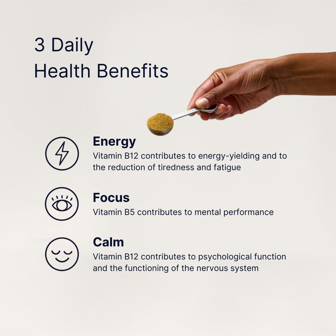 - Vitamin B Complex fuels natural energy production, helping you stay energised and resilient throughout the day.