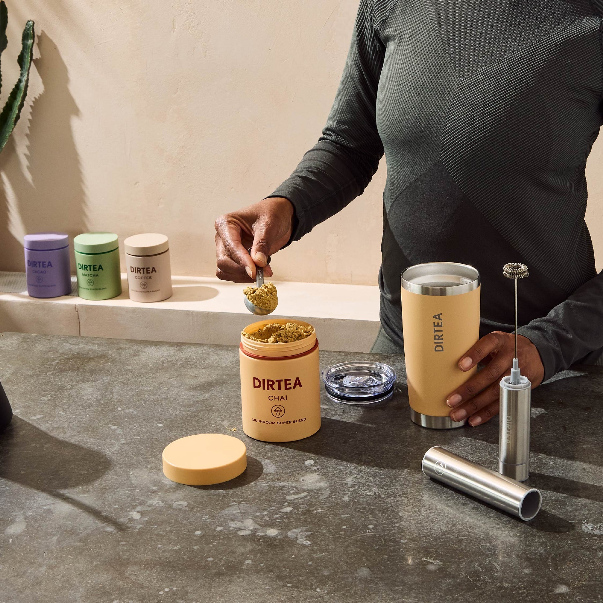 Feel the DIRTEA difference. Calm your mind, elevate your mornings, and enjoy sustained energy and focus naturally with our mushroom chai tea.