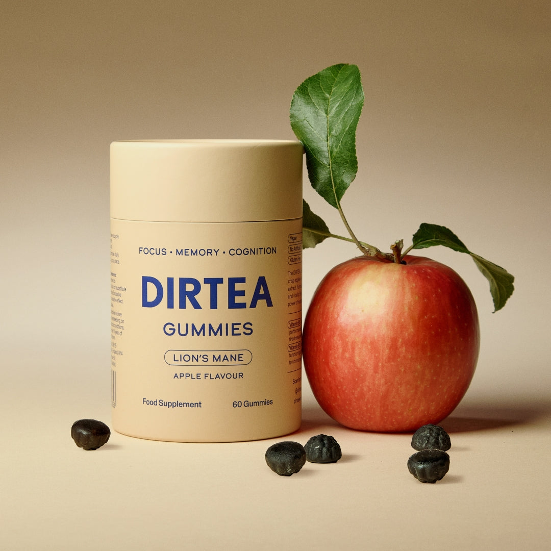 DIRTEA Lion’s Mane Gummies, powered with Lion’s Mane and 100% of your daily recommended intake of Vitamins B12 and B5, are designed to support cognitive health and overall wellbeing.