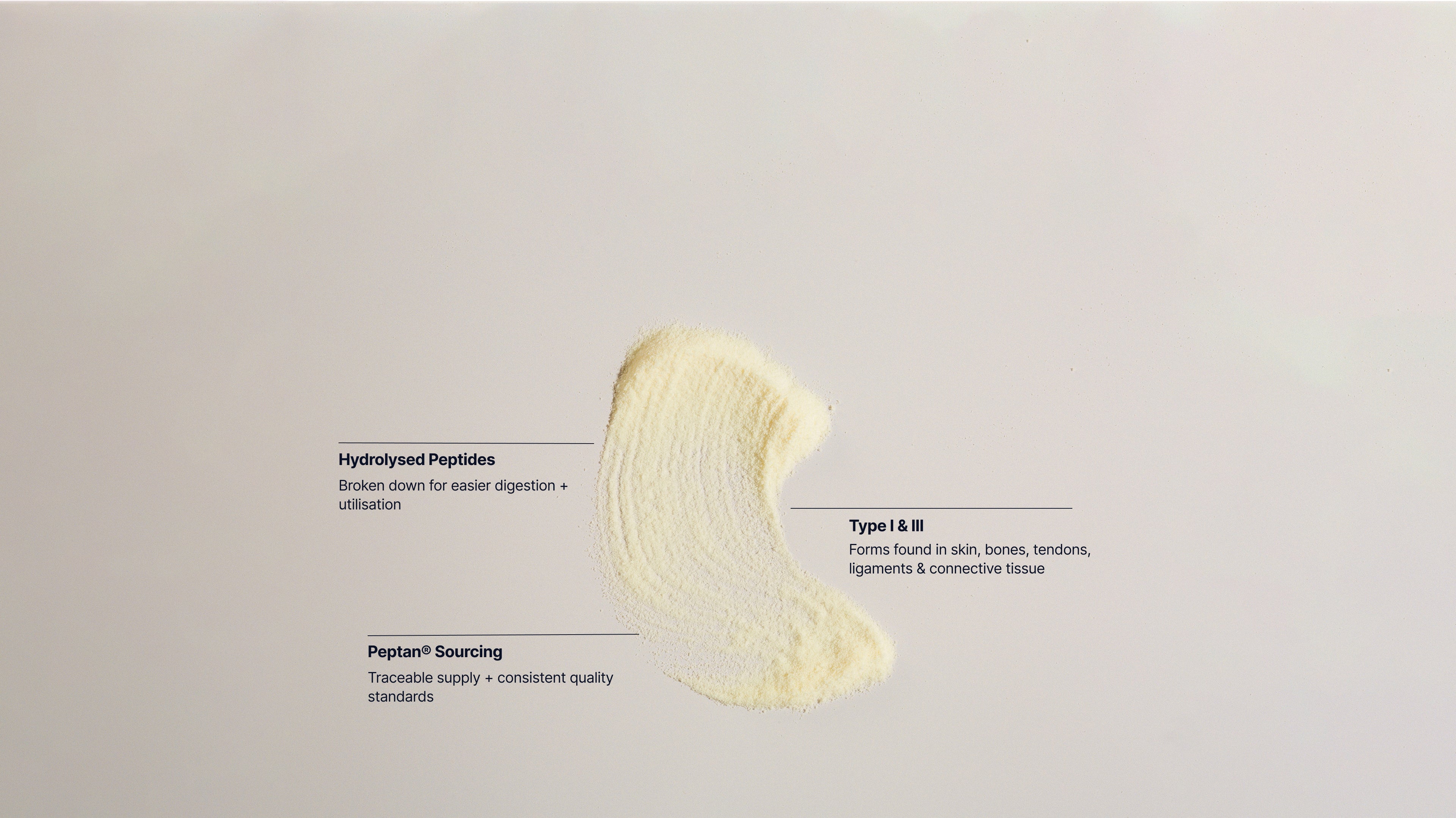 100% Hydrolysed Bovine Collagen Peptides (Peptan®) Type I & III - forms found naturally in skin and connective tissue