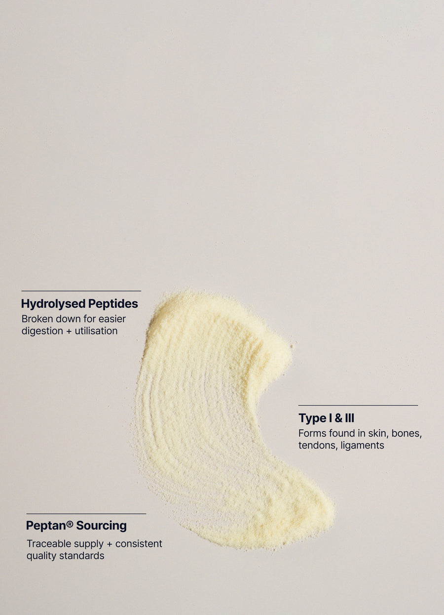 Peptan® is chosen for its quality, consistency, and bioavailability, ensuring the collagen you consume is in a form the body can efficiently absorb and utilise.